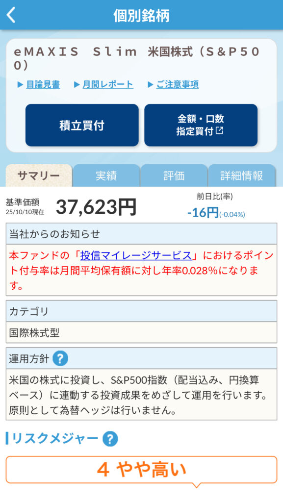 ひびきは米国が世界経済の中心と思っていますので、eMAXIS Slim 米国株式(S&P500)を