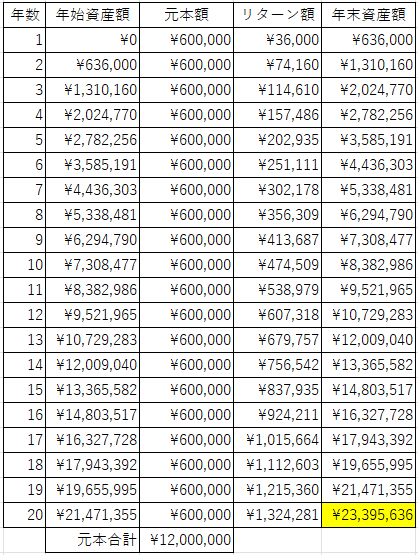 30歳で始めても50歳で老後2,000万円問題が解決しましたね(笑